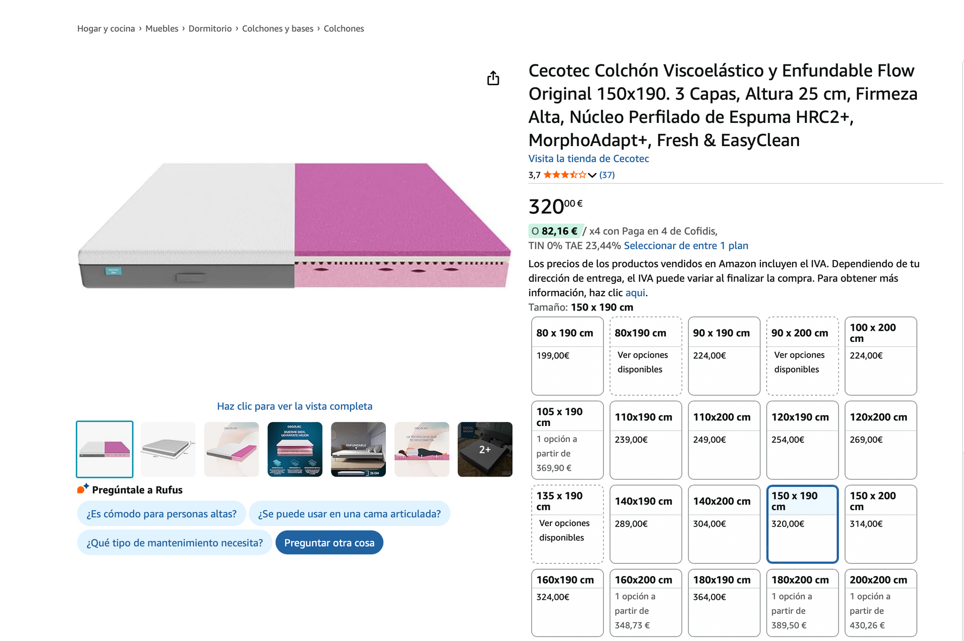 - Tecnología MorphoAdapt, que se adapta a la forma del cuerpo para ofrecer comodidad y frescor. Espuma Viscoelástica, que distribuye la presión de manera uniforme para mantener la columna en la posición óptima.